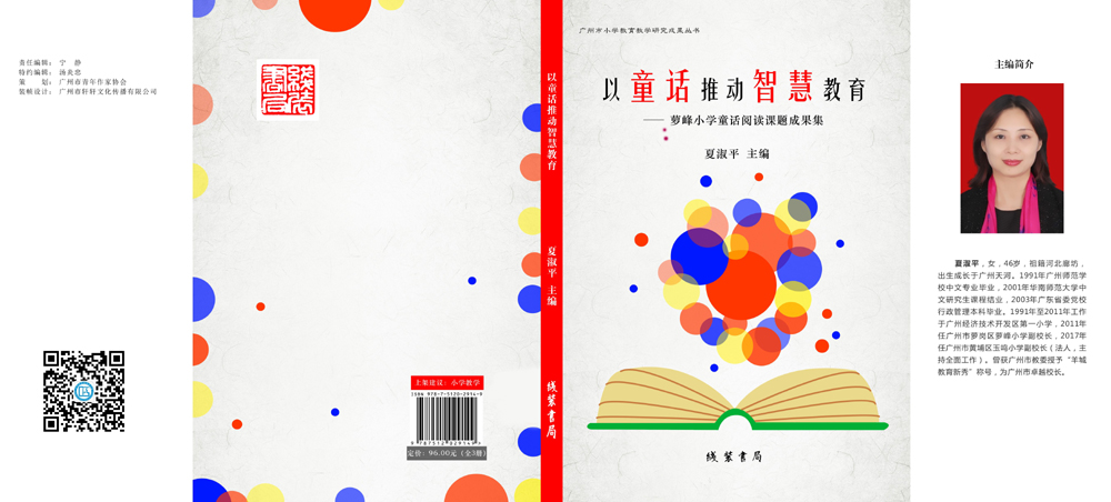 《以童話推動智慧教育 : 蘿峰小學童話閱讀課題成果集》,于2017年9月由廣州市青年作家協會策劃、夏淑平主編、線裝書局出版。【主編簡介】夏淑平,女,46歲,祖籍河北廊坊,出生成長于廣州天河。1991年廣州師范學校中文專業畢業,2001年華南師范大學中文研究生課程結業,2003年廣東省委黨校行政管理本科畢業。1991年至2011年工作于廣州經濟技術開發區第一小學,2011年任廣州市蘿崗區蘿峰小學副校長,2017年任廣州市黃埔區玉鳴小學副校長(法人,主持全面工作)。曾獲廣州市教委授予“羊城教育新秀”稱號,為廣州市卓越校長。